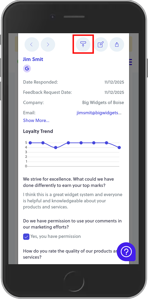 , which allows you to push a testimonial to your social channels to amplify the positive customer experience to your followers.