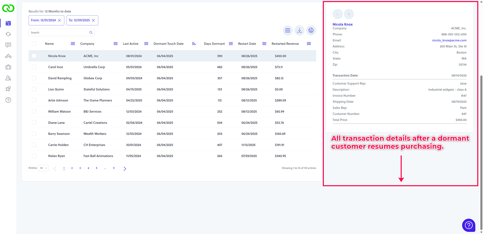 This month, we are continuing to evolve this amazing feature with advanced sales recovery analysis and reporting. These new tools show you exactly which customers were previously dormant but have reactivated their purchasing after being engaged by your dormant account survey.